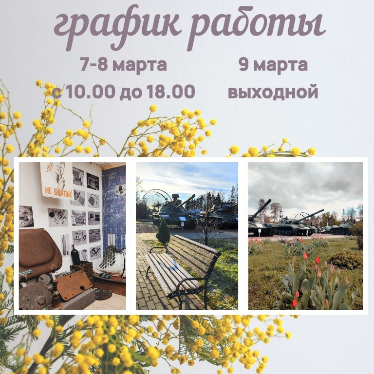 Главная / График работы музея в новогодние праздники График работы музея в новогодние праздники График работы музея в новогодние праздникиSource: Музей танка Т-34Published on 2021-12-24